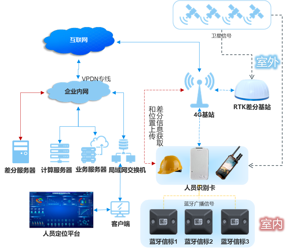 智能安全帽則在保障作業人員頭部安全的基礎上,創新性地融入了RTK+藍牙定位功能,不僅適用于室外露天作業環境,在進入倉庫等室內區域時,也能無縫切換至藍牙定位模式,實現全場景定位覆蓋。