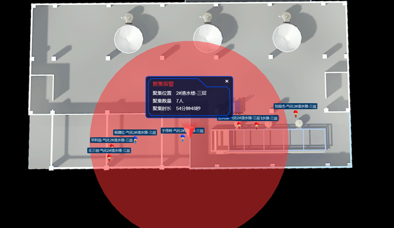 系統(tǒng)支持在工廠2D/3D電子地圖上實(shí)時(shí)顯示人員位置分布,可分樓層、分車(chē)間顯示;可對(duì)每個(gè)人的實(shí)時(shí)軌跡進(jìn)行跟蹤,實(shí)現(xiàn)了對(duì)人員位置的實(shí)時(shí)追蹤和展示。