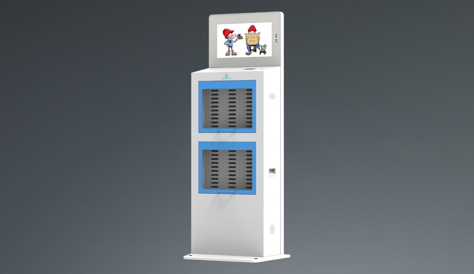 集人臉識別、發(fā)卡、考勤打卡、身份綁定、集中充電等功能于一體的智能發(fā)卡機(jī)充電柜。